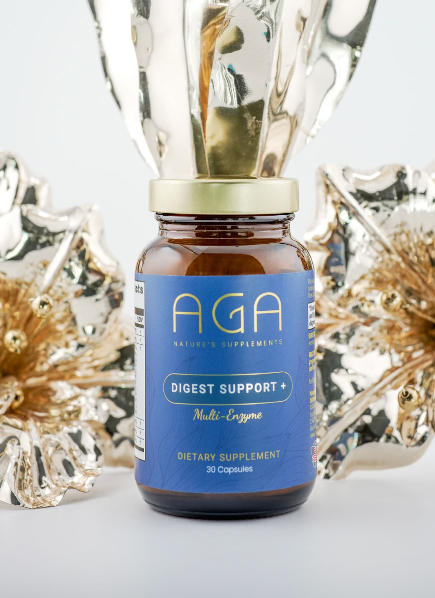 Meet your daily digestive essential. Digest Support is a targeted blend of natural enzymes, soothing botanicals, and gut-supporting actives that help your body break down food more effi ciently so you feel lighter, less bloated, and more comfortable after every meal.